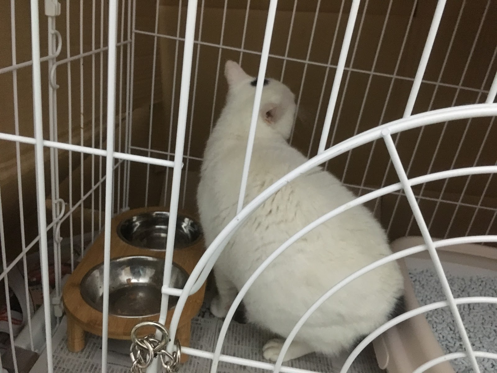 孫の手で慣らし中の朝顔ちゃん、顎だし。 2019年1月11日